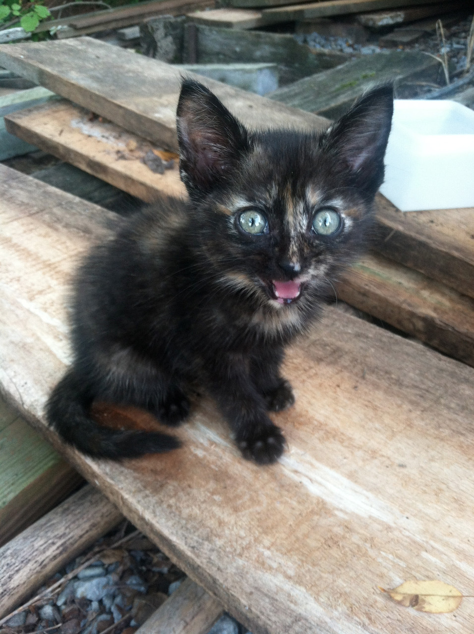 I found her behind my grandparent's shed last fourth of july. I was petting her and holding her, but then I got hot, so I went swimming.